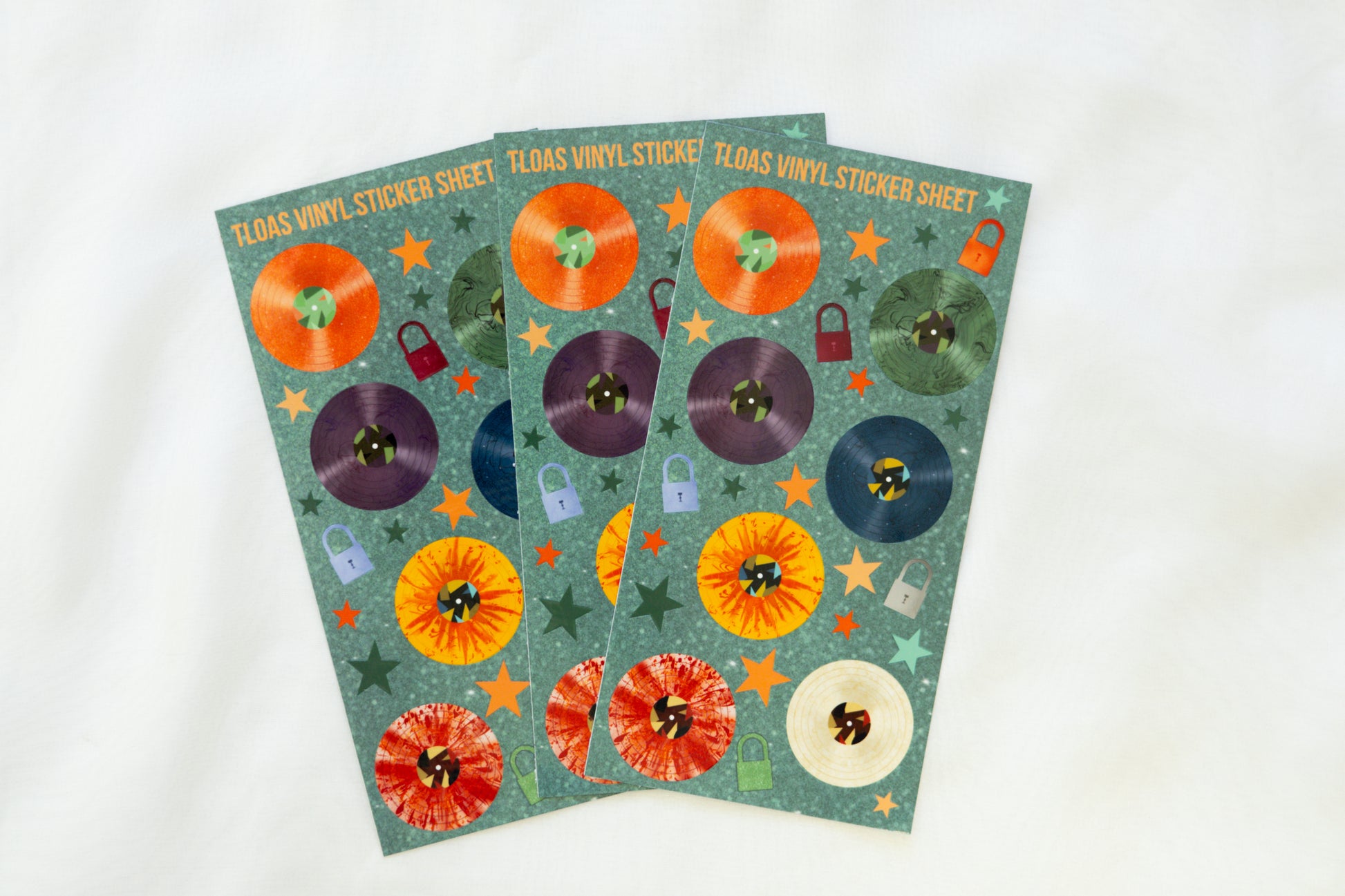 This beautiful sticker sheet depicts the seven vinyl variants of the tloas album coming out! Plus, the infamous colorful locks and a multitude of stars o complete the aesthetic!