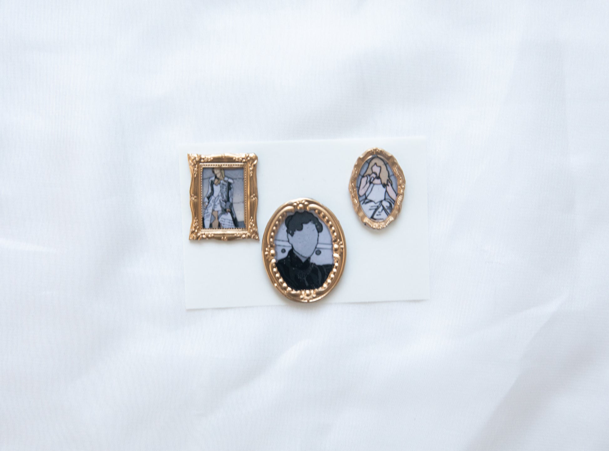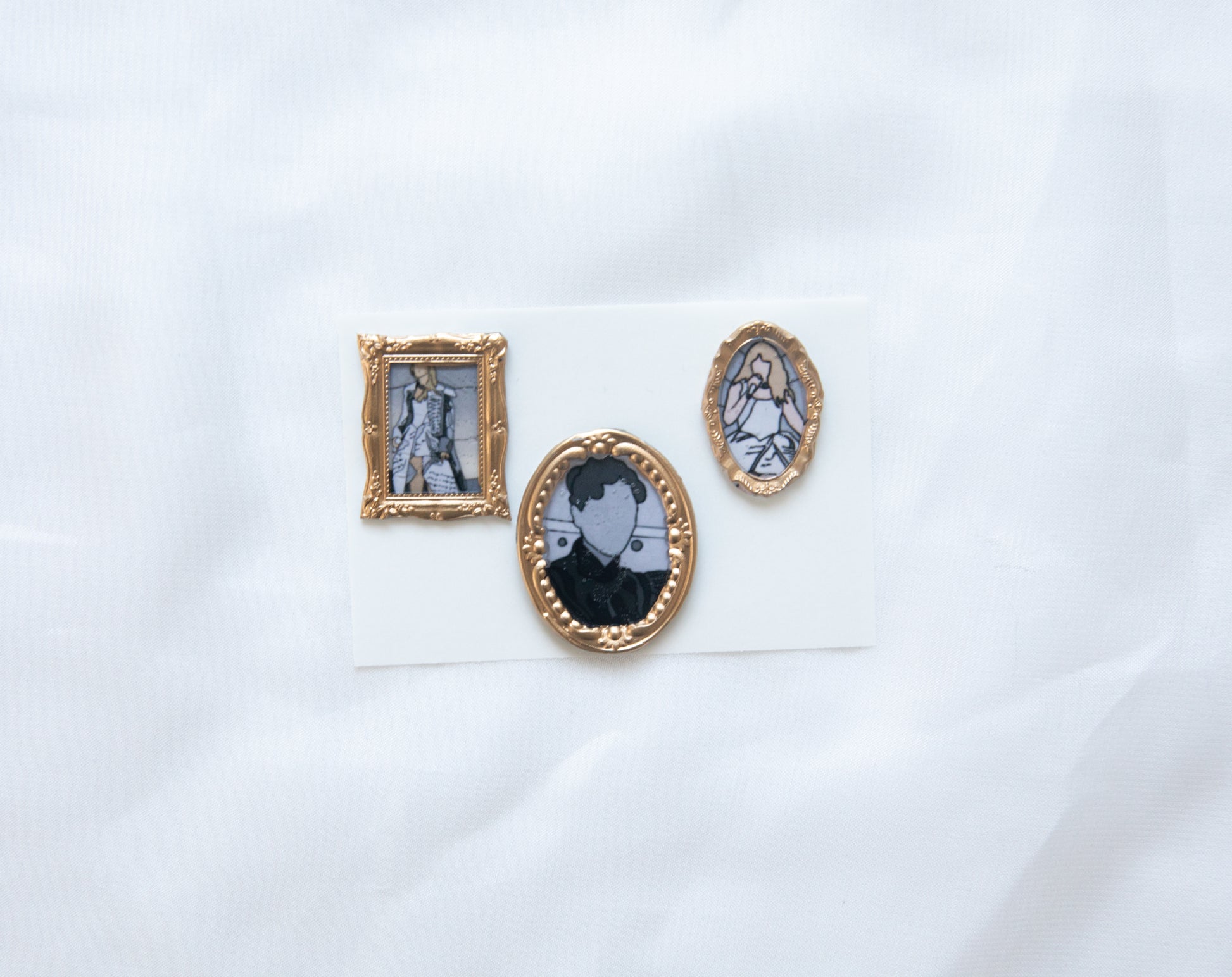There are 3 drawings total, and while the frame type may vary for each pack of stickers or magnets, you will guaranteed receive one of each of the three designs.