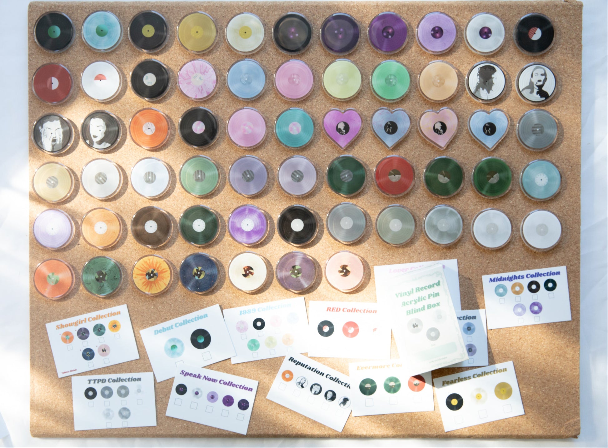 There are two small misprints on the collection booklets and cards- one of the showgirl variants were cut off of the designs, and the reputation keychains were mis-grouped together on the booklets. However, even so, there are NO issues at all with any of the pins or keychains themselves.